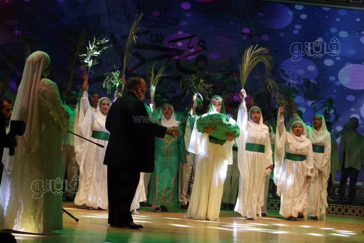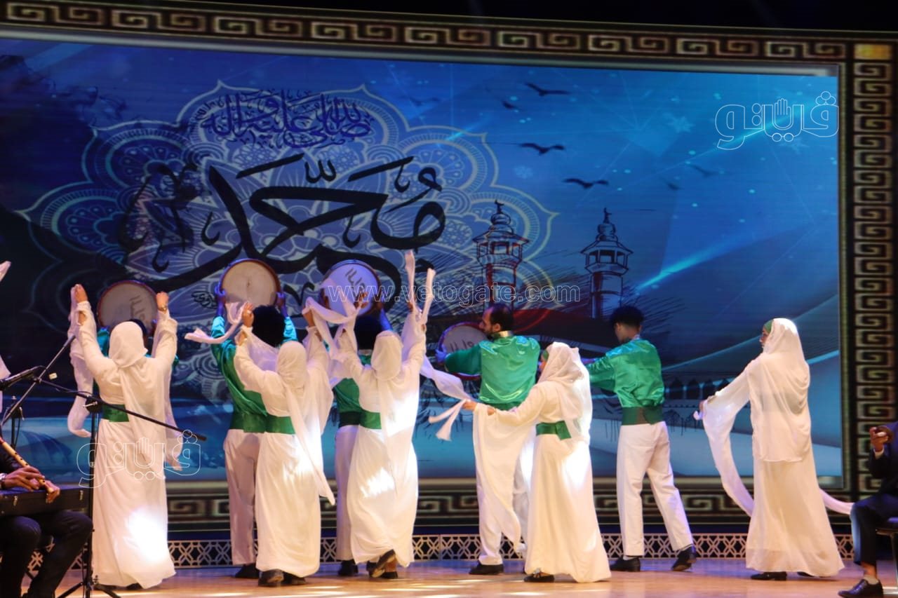 وشارك في الحفل أيضا فرقة "البحيرة للإنشاد الديني"، التي غردت علي المسرح بالابتهالات والأناشيد الدينية.