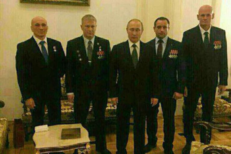 وغاب بريجوجين عن تلك الصورة الملتقطة في عام 2016، لكن حضر من بين الجنرالات السابقين أندريه تروشيف، والذي تقلد مهمة الرئيس التنفيذي للمجموعة، في منصب أشبه برئيس الأركان.