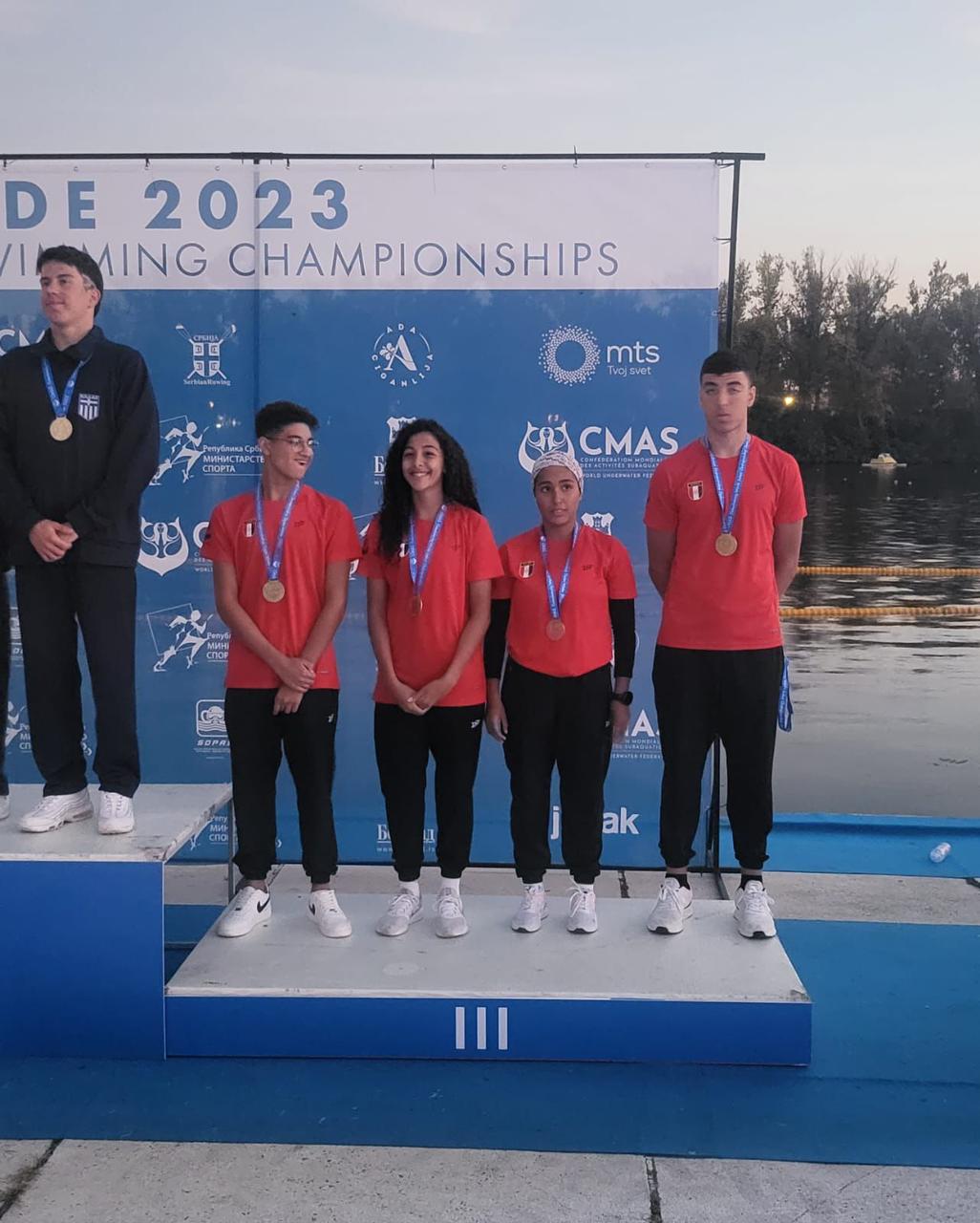 وأصحاب اللقب العالمي والميداليات الذهبية هم: ملك شريف سعيد، ميداليتين، (سيدات 1 كم مونو، و150 متر مونو)، ندى مجدي أبو مسلم (سيدات 5 كم مونو)، مروان أحمد العمراوي (رجال 1 كم مزدوجة)، غادة محمد وردة (ناشئات 150 متر مونو)، حسن محمد عادل (ناشئين 1 كم مونو)، مهاب ايهاب حلمي، ميداليتين (ناشئين 5 كم مونو، و150 متر مونو)، محمد طاهر علام 3 ميداليات (ناشئين 1 كم مزدوجة، و3 كم مزدوجة، و150 متر مزدوجة)، 4*1 كم مونو تتابع مختلط كبار بالفريق المكون من: مروان أحمد العمراوي، أدهم أحمد محمد فؤاد، ونبيلة حسن اسماعيل، وملك شريف سعيد.