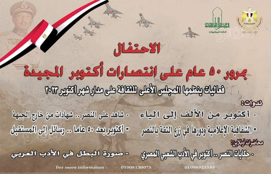 يدشن المجلس الأعلى للثقافة خريطة وقائمة طويلة بالتزامن مع احتفالات مرور 50 عامًا على انتصارات أكتوبر المجيدة.