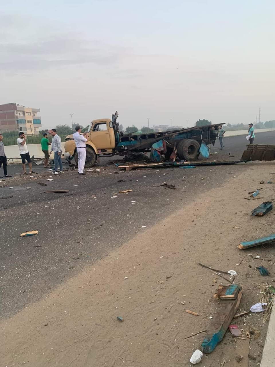 حصلت فيتو على الصور الأولى من موقع حادث شهده طريق محور شرق الرياح التوفيقي الجديد بعد كوبري جمجرة دائرة مركز شرطة بنها بمحافظة القليوبية، حادث تصادم ميني باص بسيارة نقل، ما أسفر عن مصرع 3 أشخاص، وارتفع عدد الإصابات إلى 24 آخر، جرى نقل الجثث لمشرحة مستشفى بنها التعليمي، وكذلك نقل المصابين لمستشفى بنها الجامعي، ومستشفى بنها التعليمي، وتحرر محضر بالواقعة، وتولت النيابة التحقيق.