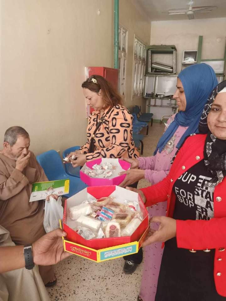 طبيبة قبطية توزع حلوى المولد على المرضى بعيادة تأمين الفشن ببني سويف (صور)