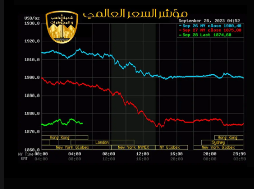 خلال الايام القليلة الماضية هبط الذهب العالمى بنسبة بلغت 3.98 بالمئة وتراوحت أسعار الاونصة العالمية ما بين 1850 إلى 1900 دولار للأوقية العالمية.