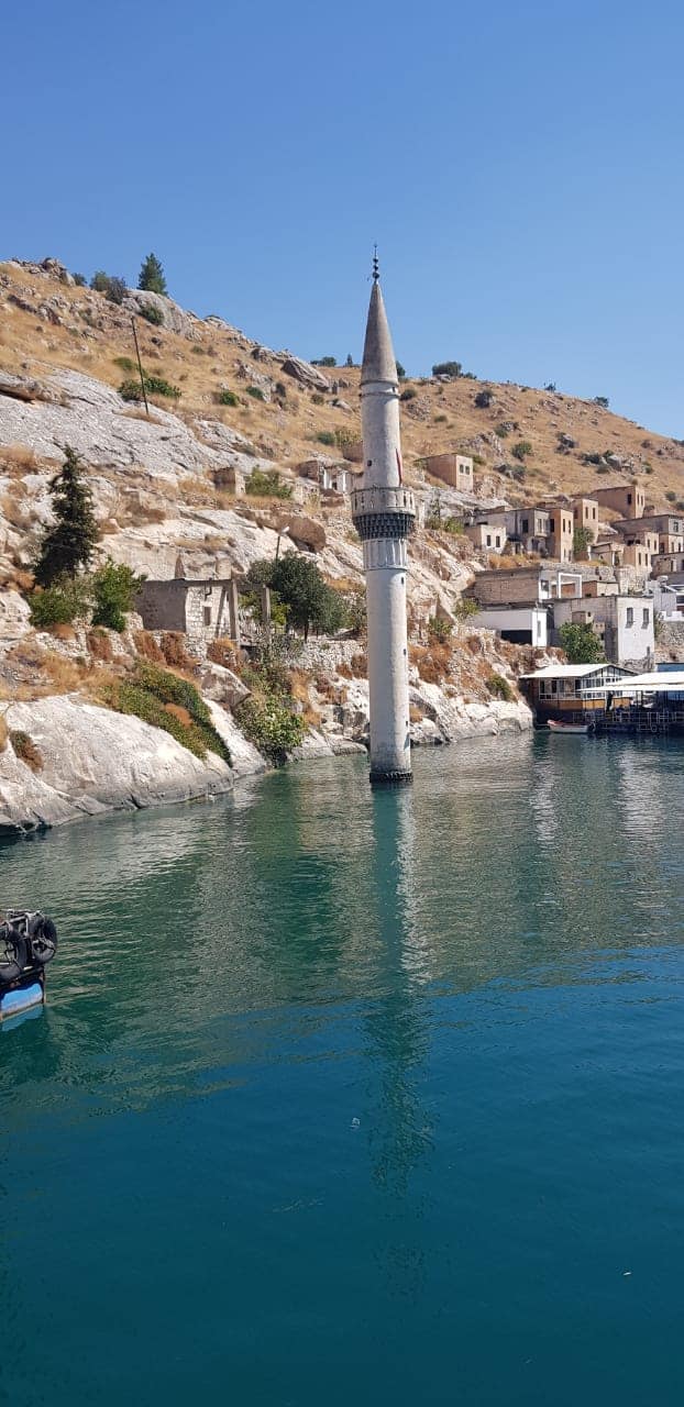 إلا أن تلك المدن التاريخية غرقت بأكملها تحت مياه نهر الفرات بسبب بناء سد أتاتورك الذي يعد أكبر سد في تركيا بسعة مائية تبلغ 48.7 مليار متر مكعب ولكن تم تجميع بعض من أجمل تلك اللوحات من الفسيفساء قبل غرقها تحت النهر وعرضها في متحف الفسيفساء في المدينة، وتعتبر لوحة الغجرية نموذج مشابه ولكن بالفسفساء للوحة الموناليزا حيث تنظر الفتاة بنظرة كلها حزن وشجن وقلق وكانها تنظر للفراغ امامها وتتنبأ بما سيحل بالمدينة من مأساة بسبب الغرق بعد بناء سد أتاتورك، و يمكنك أن تري في نهر الفرات مساجد غارقة يظهر فقط نصف مأذنتها العلوي فوق النهر والنصف الاخر والمسجد اسفل المياه، فهناك مدينة عائمة يظهر جزء صغير منها أعلى النهر كان يعيش بها الاف من البشر وتم تهجيرهم بسبب السد،و تشتهر المدينة ايضا بزراعة الزهرة السوداء النادرة الموجودة فقط في تلك المنطقة من العالم منطقة خلقتي على الضفة الشرقية لنهر الفرات.