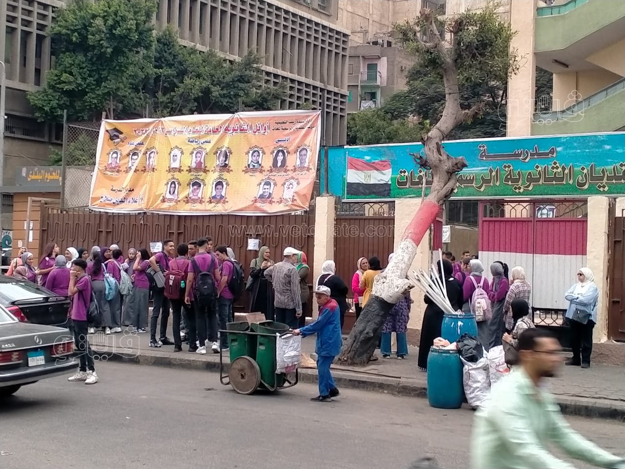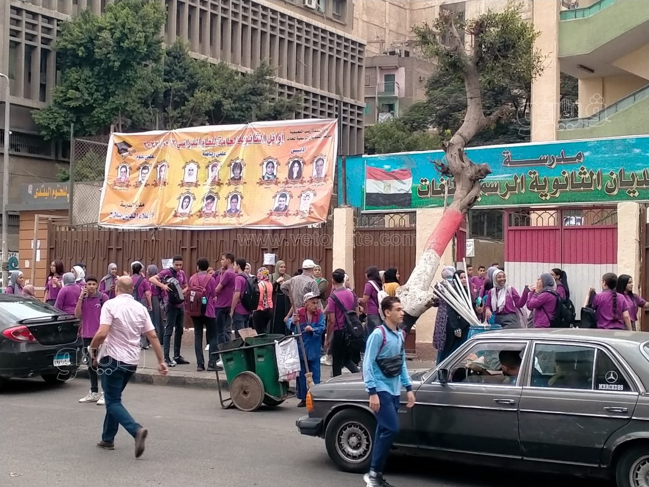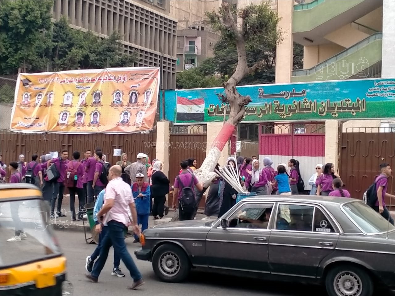 وحرص عدد من طالبات مدرسة المنيرة الرسمية للغات بشارع المبتديان على التقاط الصور التذكارية مع أصدقائهم وعائلتهم لتوثيق بداية العام الدراسي.