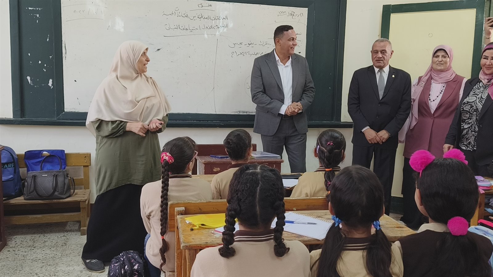 محافظ الدقهلية يرفع حقيبة من كتف تلميذة داخل الفصل المدرسي (فيديو وصور)
