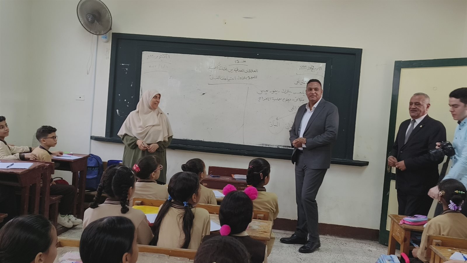 ودخل محافظ الدقهلية الفصول وشارك الطلاب المادة العلمية التي تدرس للطلاب وقام بسؤال الطلاب والتصفيق لأحد الطلاب لاجابته الصحيحة عن كيفية التعامل مع النبات وكيف يزرع بالمنزل ؟