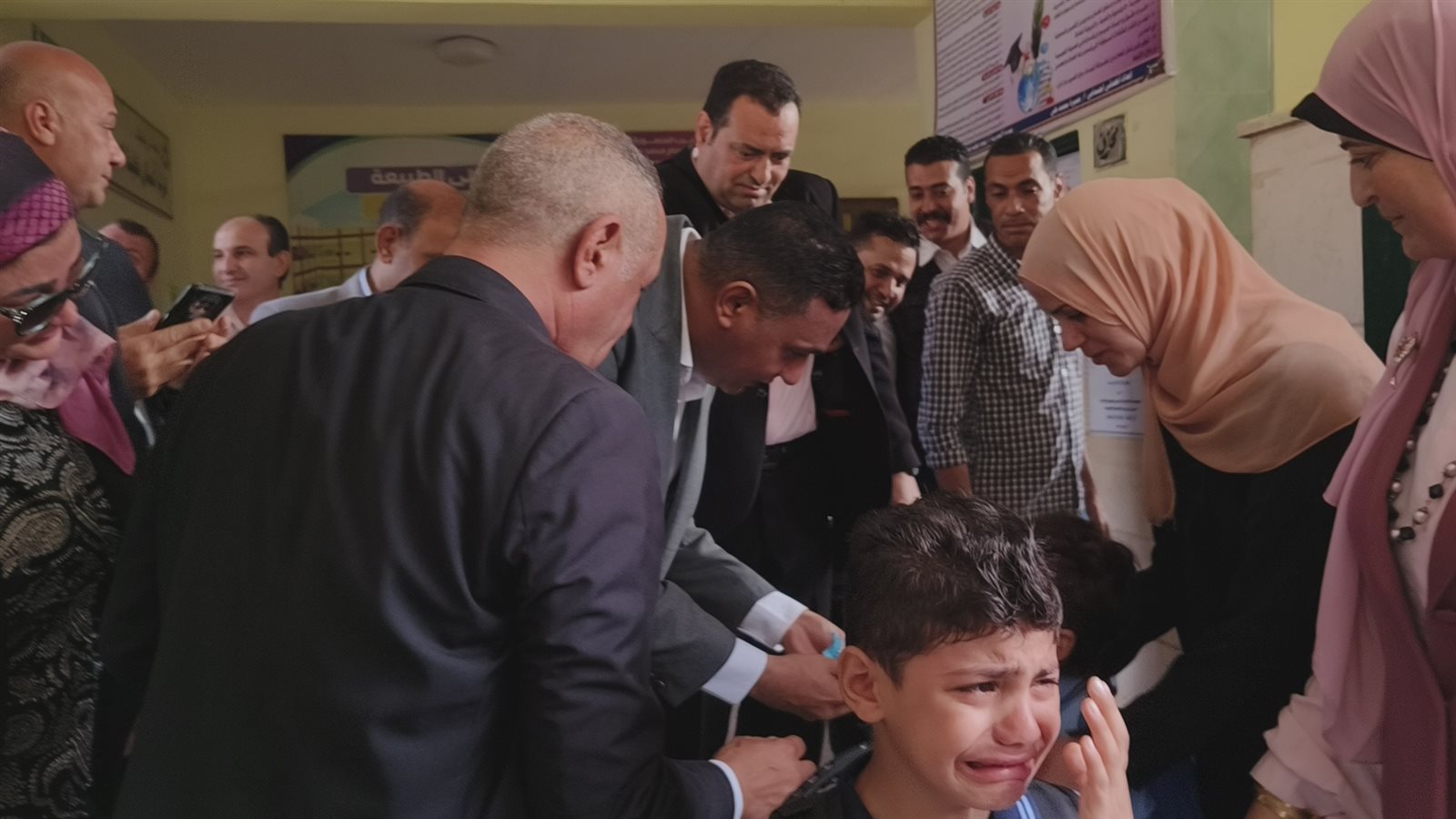 بكاء هستيري لطفل في أول أيام الدراسة ومحافظ الدقهلية يحاول تهدئته (فيديو وصور)