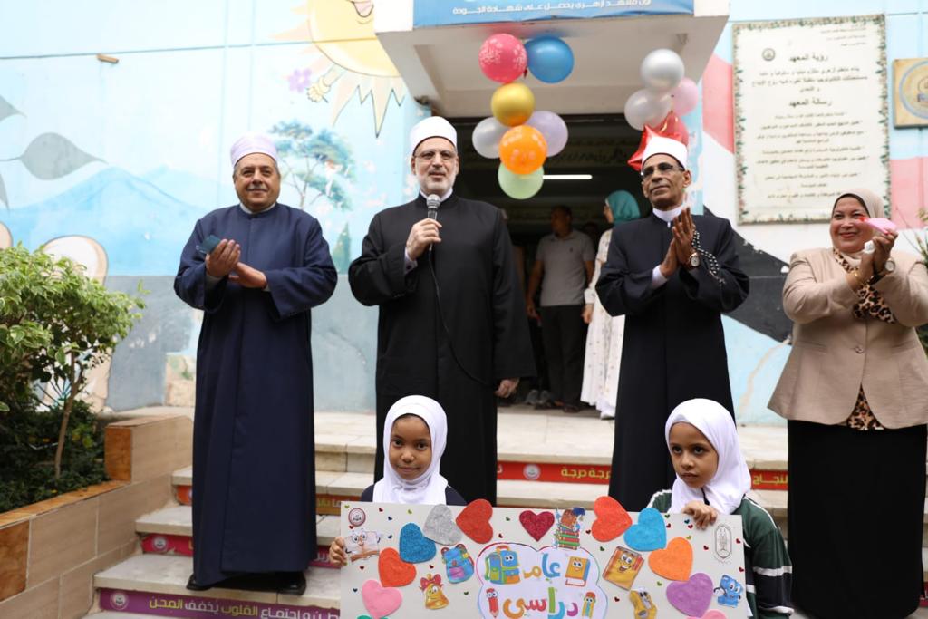 وخلال كلمته بطابور الصباح، هنأ وكيل الأزهر المعلمين والطلاب وأولياء الأمور وجميع القائمين على العملية التعليمية بالمعاهد الأزهرية، بمناسبة بدء العام الدراسي الجديد، ناقلا لهم تحيات فضيلة الإمام الأكبر، د.أحمد الطيب، شيخ الأزهر، ودعواته لهم بالتوفيق والسداد في عامهم الدراسي الجديد.