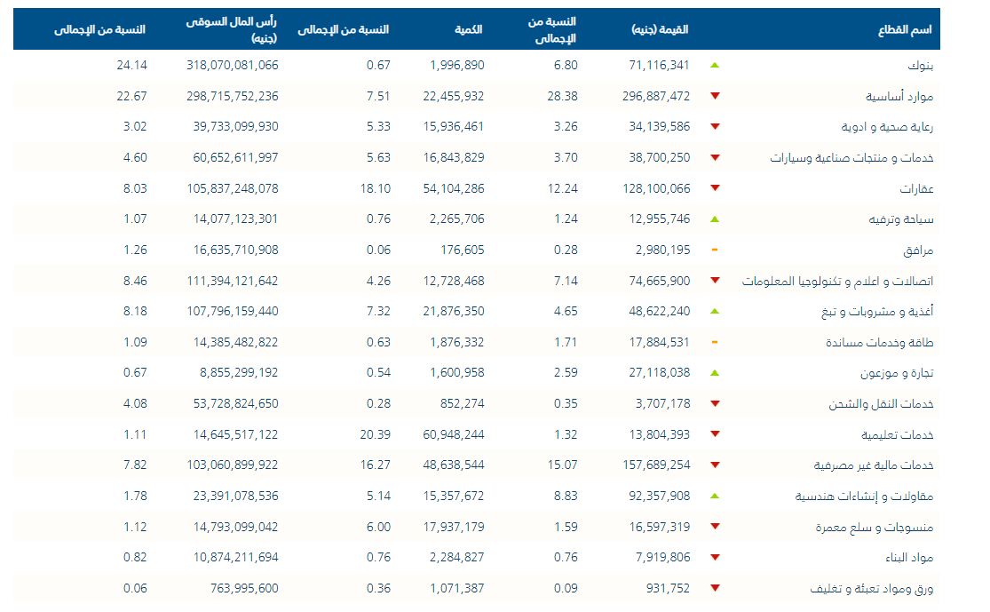 حركة تداولات جميع قطاعت البورصة المصرية اليوم الأحد 1/10/2023
