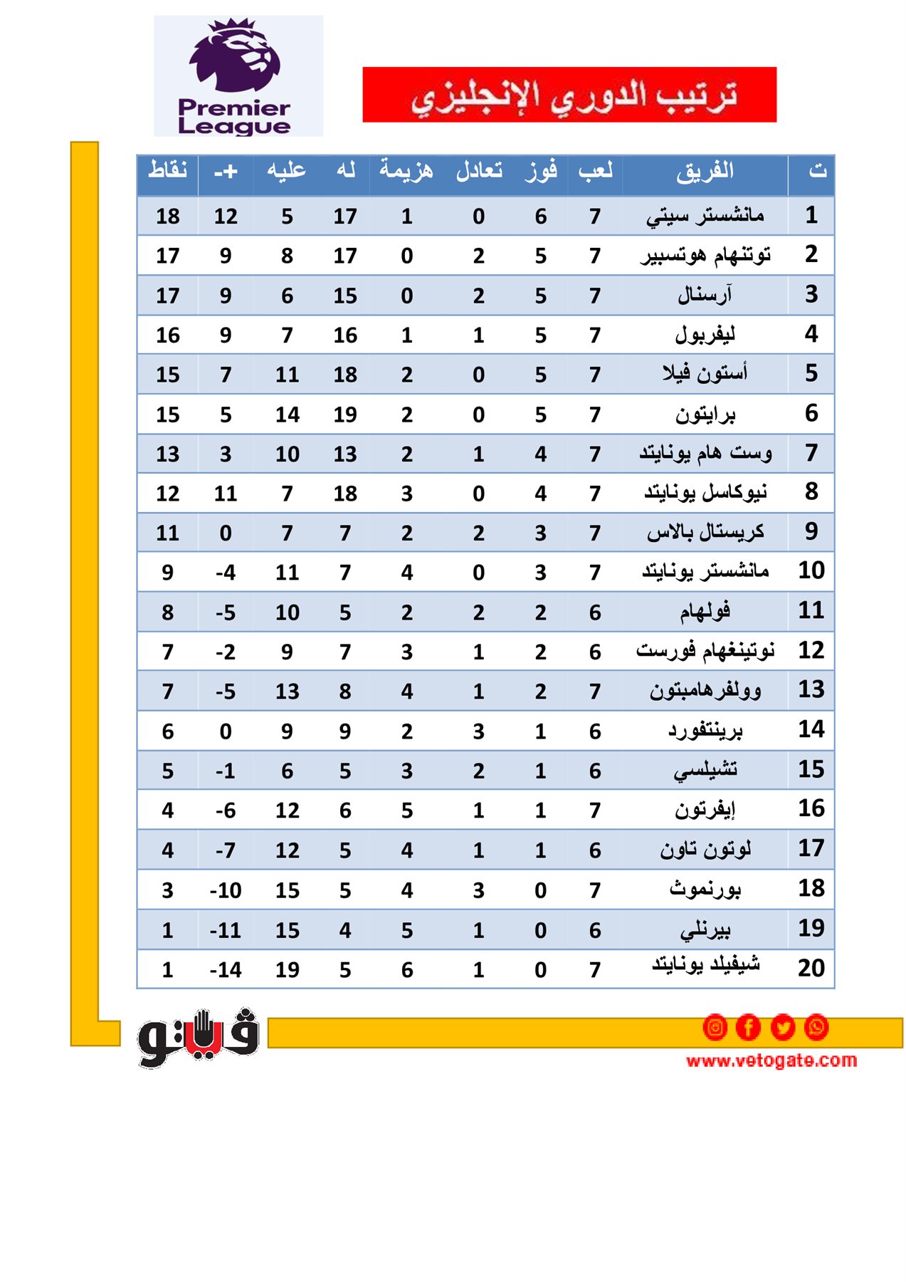 ترتيب الدوري الانجليزي