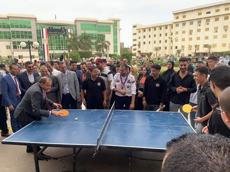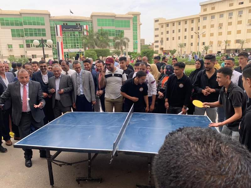 مباراة تنس طاولة بين رئيس جامعة بني سويف والطلاب