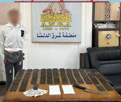 ضبط عاطل"له معلومات جنائية" حال تواجده بدائرة قسم شرطة جمصة وبحوزته 40 طربة لمخدر الحشيش وزنت 4 كيلو جرام – كمية لمخدر الآيس "الشابو" وزنت كيلو جرام –سلاح أبيض.