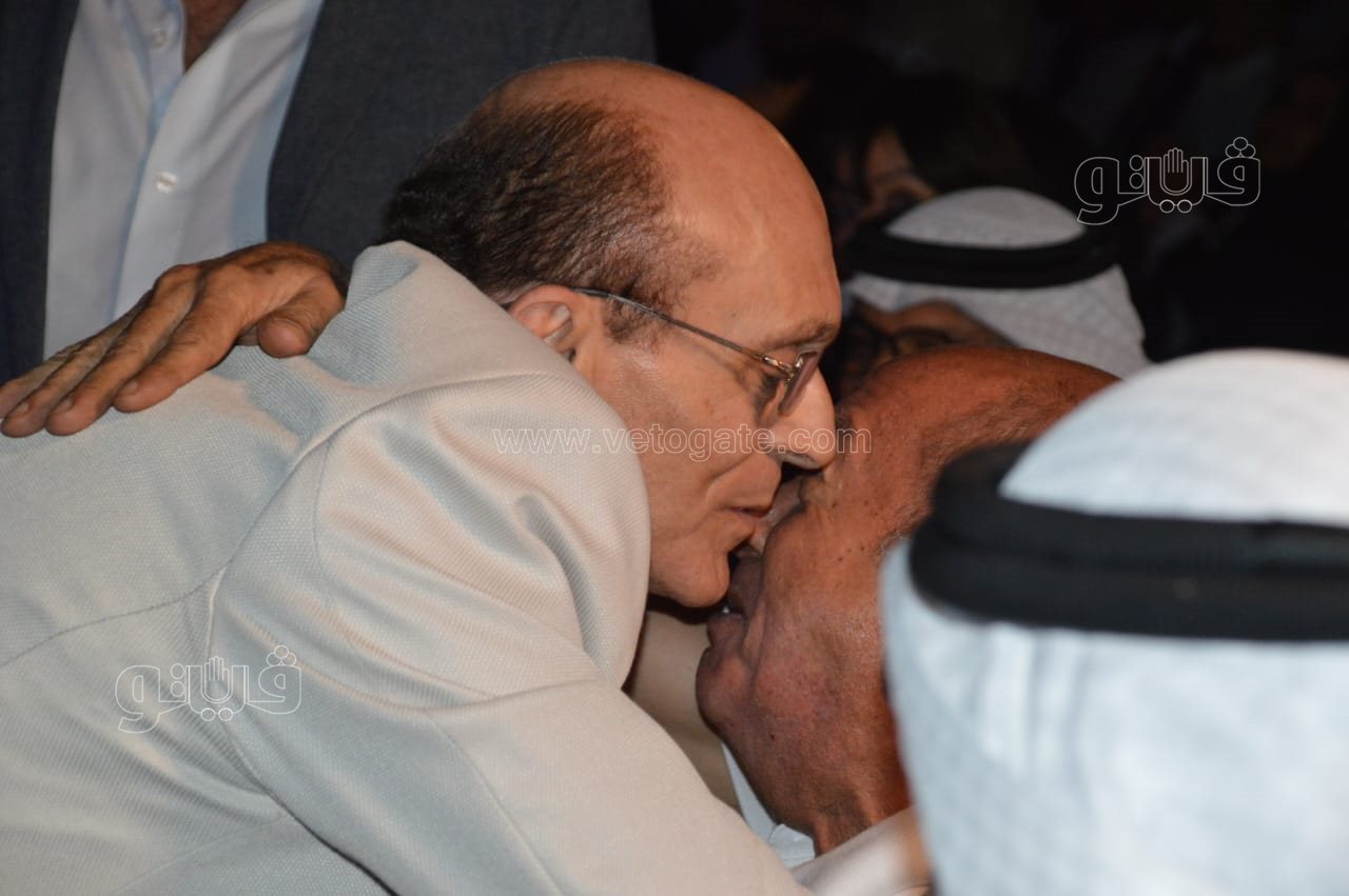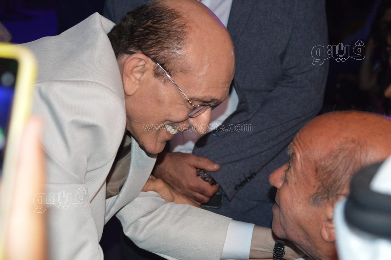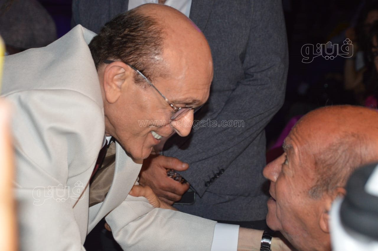 وقبل الفنان محمد صبحي رأس لطفي لبيب، وسط حالة من المحبة بين الطرفين، فيما وجه لطفي لبيب التحية لمحمد صبحي وأشاد بما يقدمه في مسرحه.