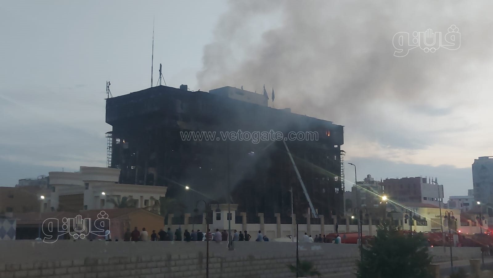 الفحص الأولي: النيران التهمت محتويات 9 طوابق في حريق مبنى مديرية أمن الإسماعيلية