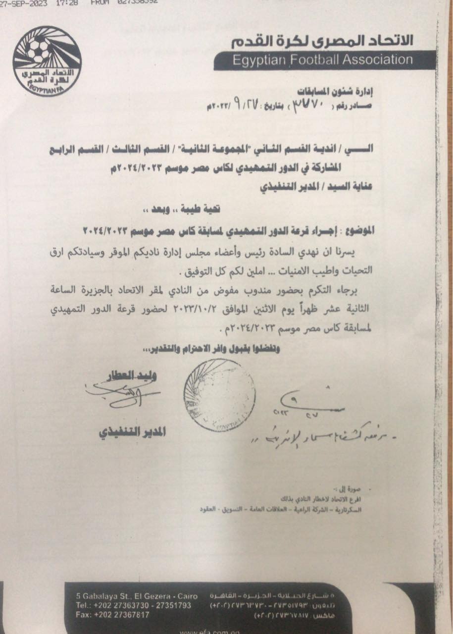 وكان اتحاد الكرة، حدد آخر يوم لدفع اشتراك المشاركة في بطولة كأس مصر موسم 2023-2024.