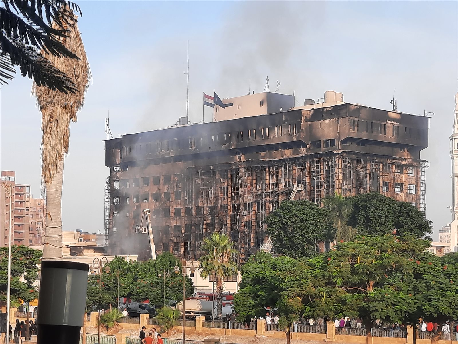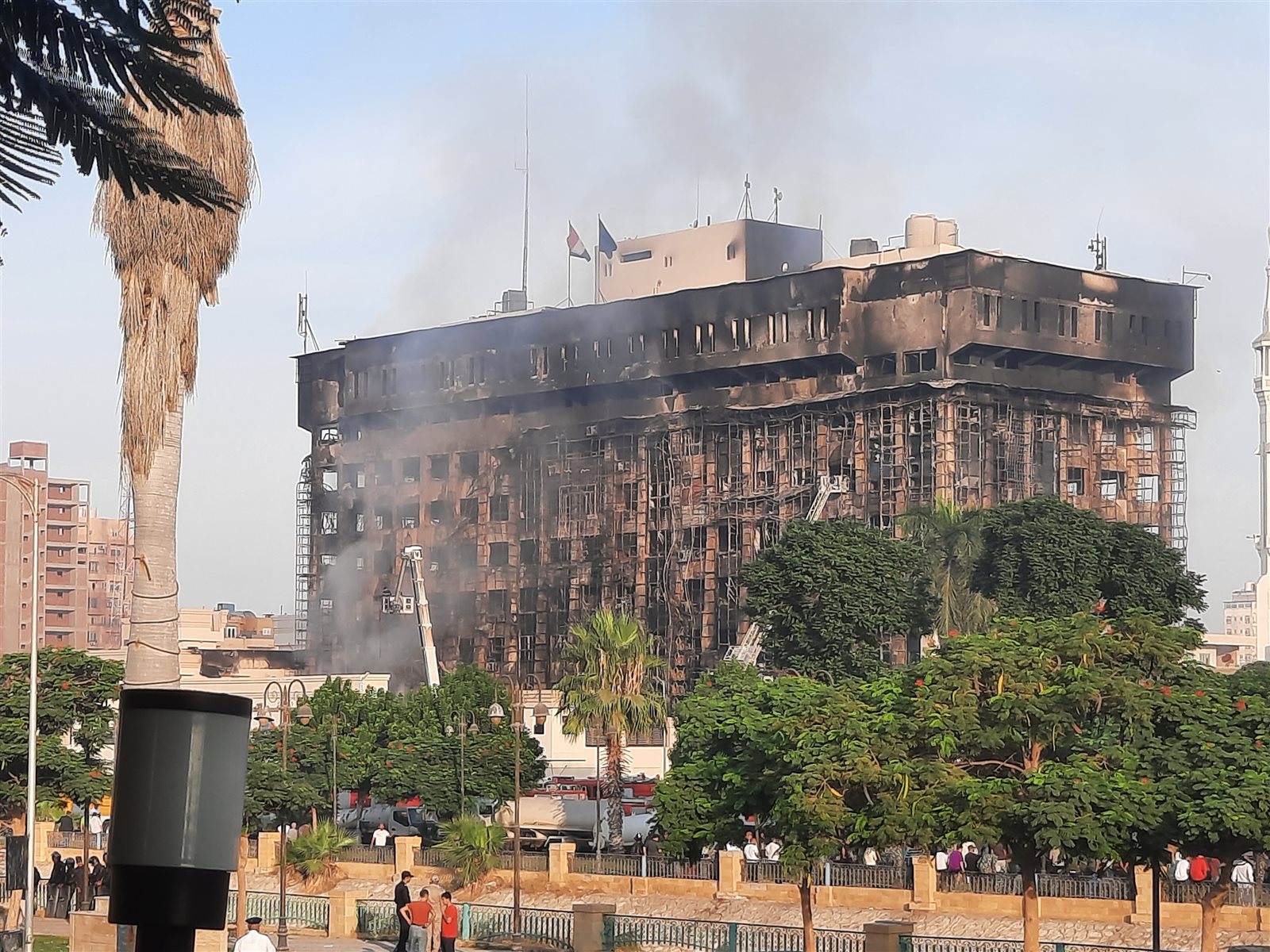 وبدأ الحادث بتصاعد ألسنة اللهب من إحدى طوابق المبنى، ثم في لحظات تحول مبنى مديرية أمن الإسماعيلية إلى كتلة ضخمة من النار وسط ذهول المواطنين الذين تجمهروا حول المبنى.