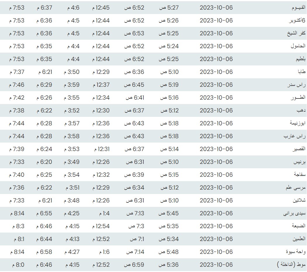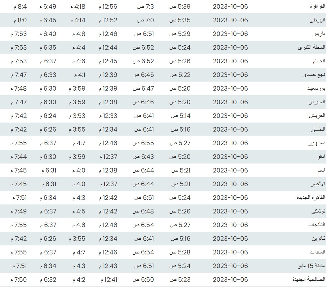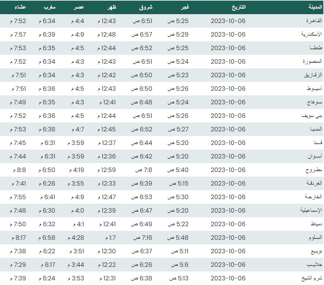 مواقيت الصلاة اليوم بتوقيت القاهرة