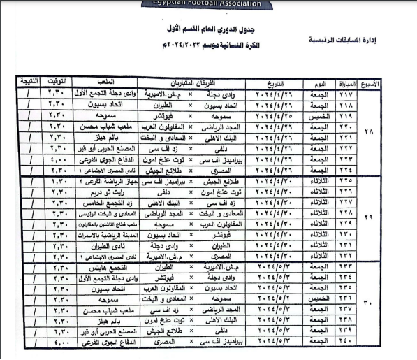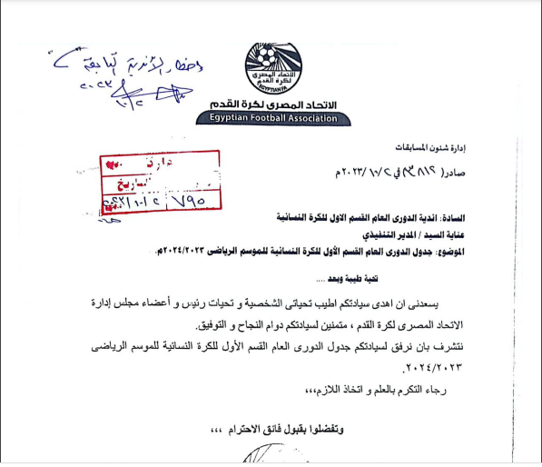 ننشر جدول مباريات دوري الكرة النسائية لموسم 2023 - 2024