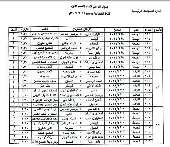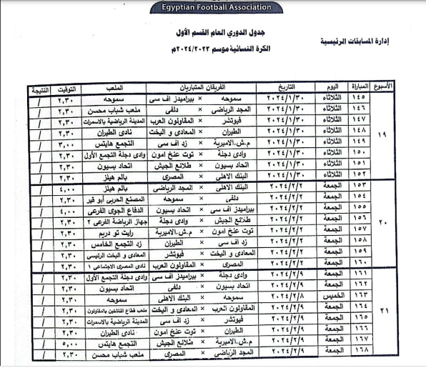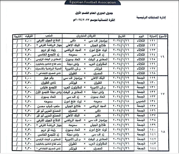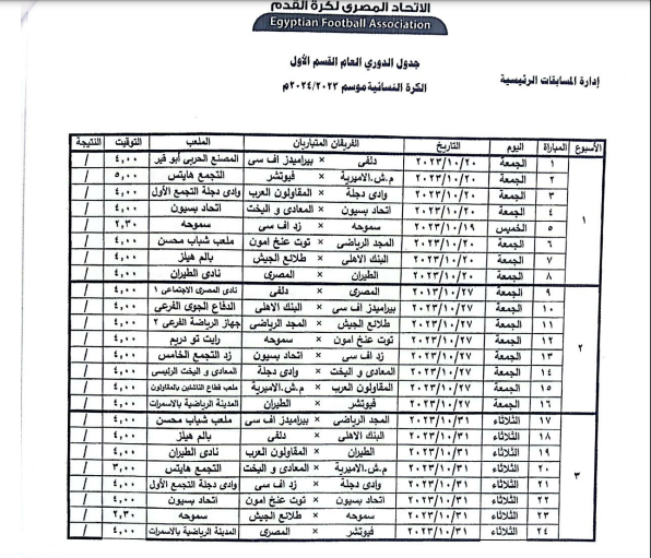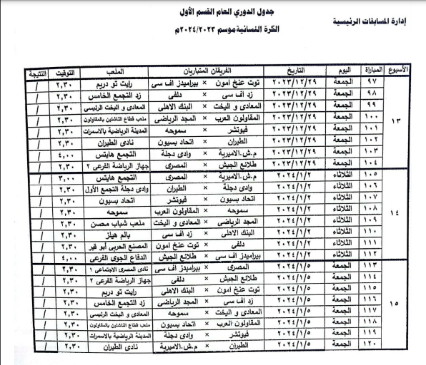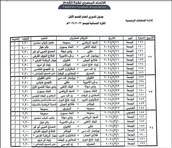 وجاءت مواعيد جولات دوري الكرة النسائية للقسم الأول على النحو التالي: