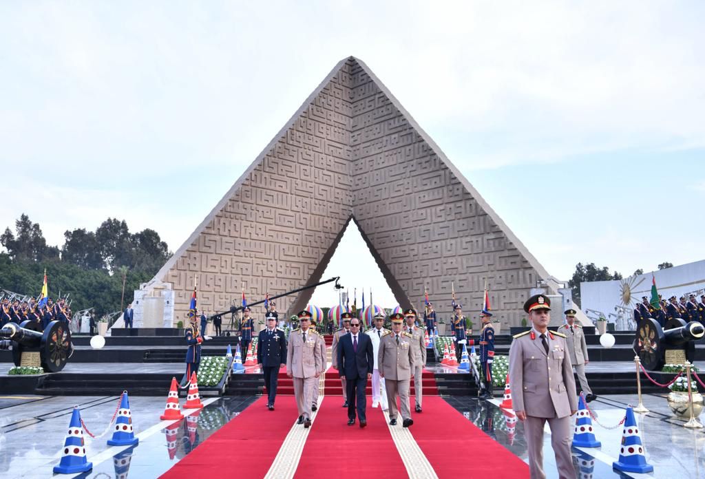 قام الرئيس عبد الفتاح السيسى رئيس الجمهورية القائد الأعلى للقوات المسلحة، يرافقه الفريق أول محمد زكى القائد العام للقوات المسلحة وزير الدفاع والإنتاج الحربى، والفريق أسامة عسكر رئيس أركان حرب القوات المسلحة بوضع إكليل من الزهور على النصب التذكارى لشهداء القوات المسلحة بمدينة نصر، وعزفت الموسيقات العسكرية سلام الشهيد فى تقليد عسكرى أصيل وفاءً لشهداء مصر الأبرار.