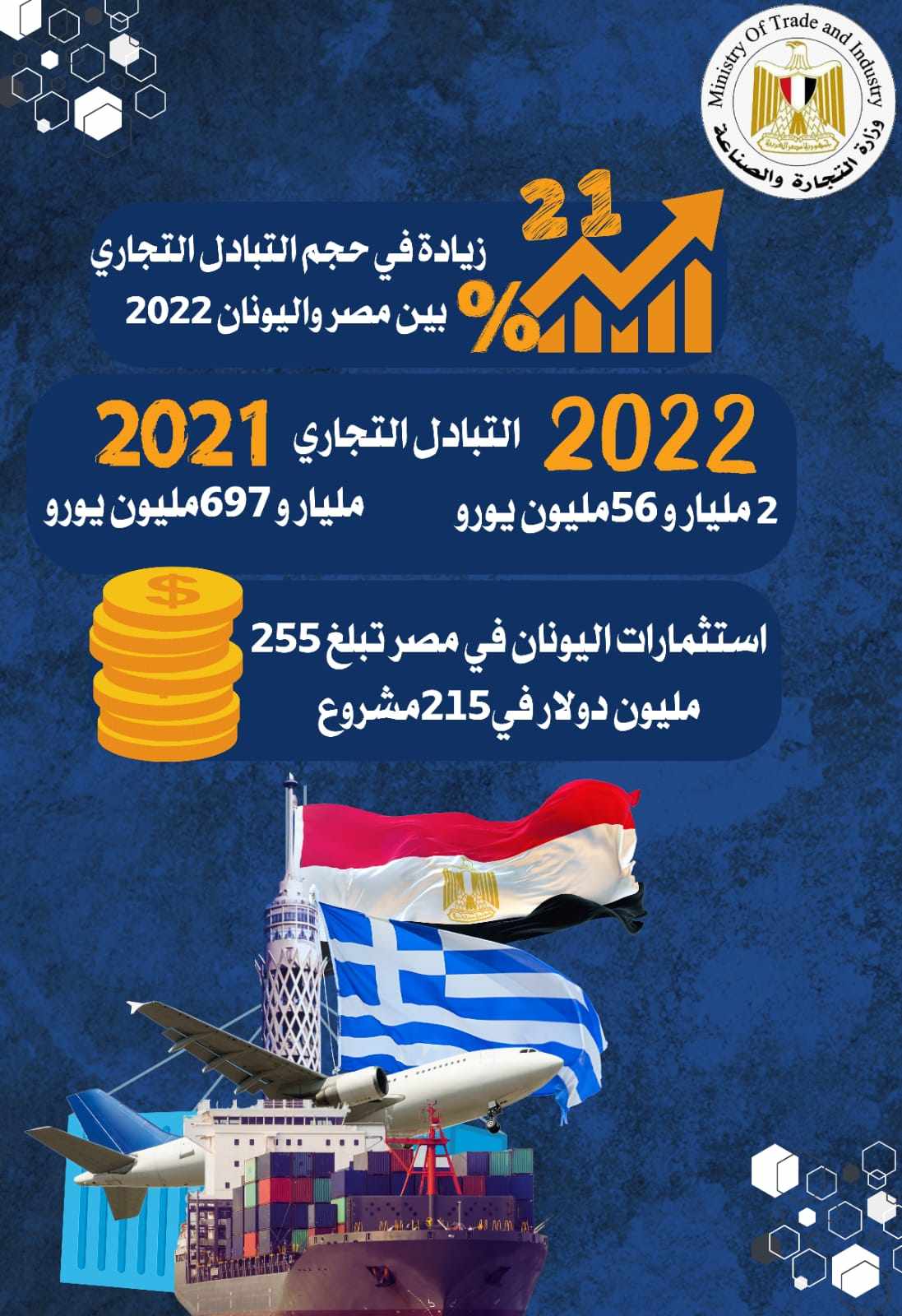 21% زيادة في حجم التبادل التجاري بين مصر واليونان خلال عام 2022
