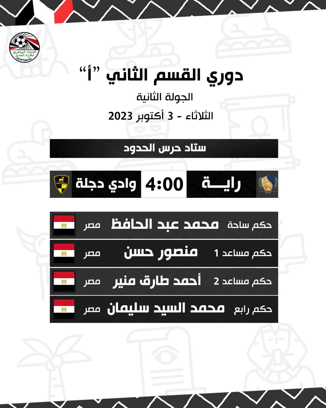 والحكمين هما: محمد عبد العزيز، وتولى إدارة مباراة المصرية للاتصالات ضد جمهورية، والحكم الثاني هو محمد عبد الحافظ، الذي أدار مباراة راية ضد وادي دجلة.