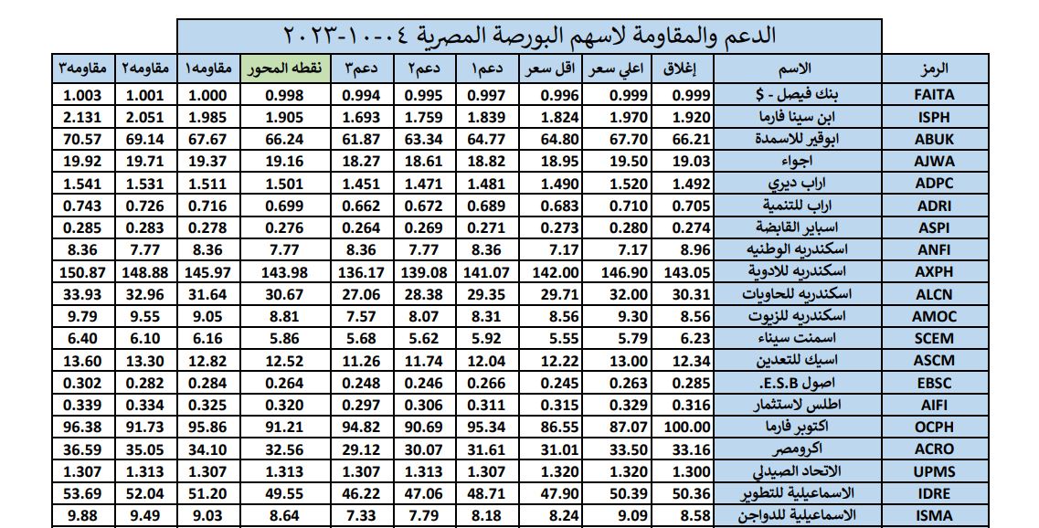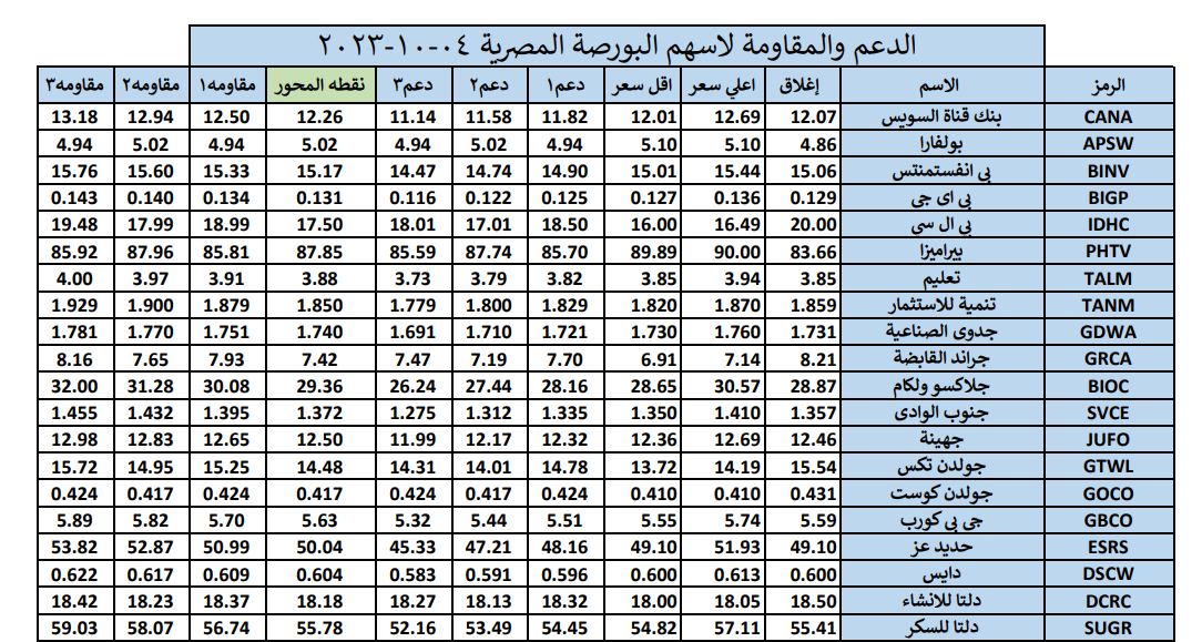 التحليل الفني لمؤشرات البورصة المصرية اليوم الأربعاء 4-10-2023