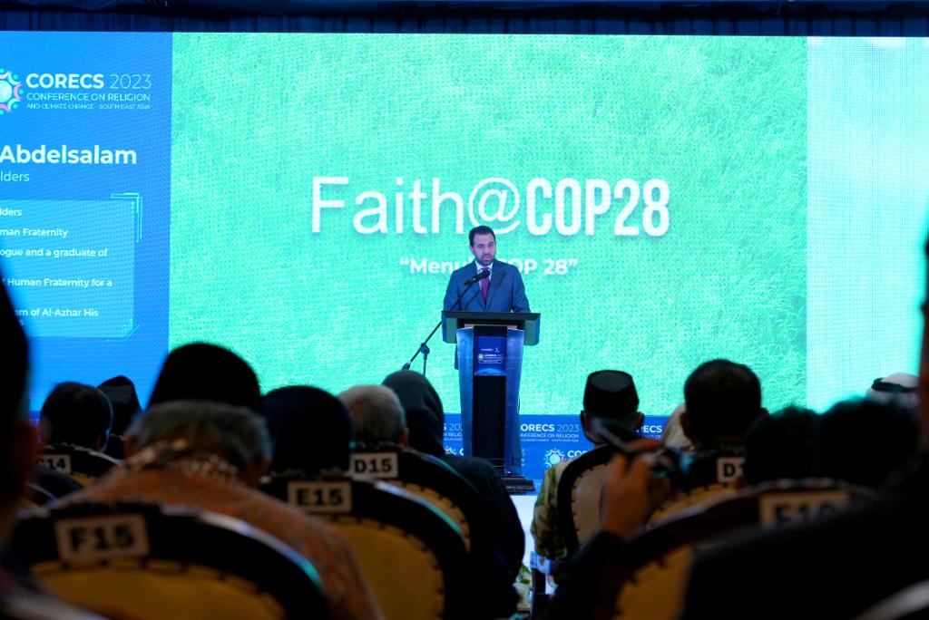 وأشاد المستشار عبد السلام بالنموذج الإندونيسي في مواجهة آثار التغير المناخي، مشيرًا إلى أنه ما كان له أن يتبلورَ دون رؤية تستحضر مسؤوليات الإنسان بوصفه كائنًا مكرَّمًا من الخالق، ومستخلَفًا من قِبَلِه في الأرض لإعمارها، تُعلِي من قيم الدين في التنمية المتوازنة، وبناء النظام الاقتصادي العادل والمستدام، وهو نموذج نسعى مع قادة الأديان لنقاشه والاستفادة منه في مختلف البيئات.