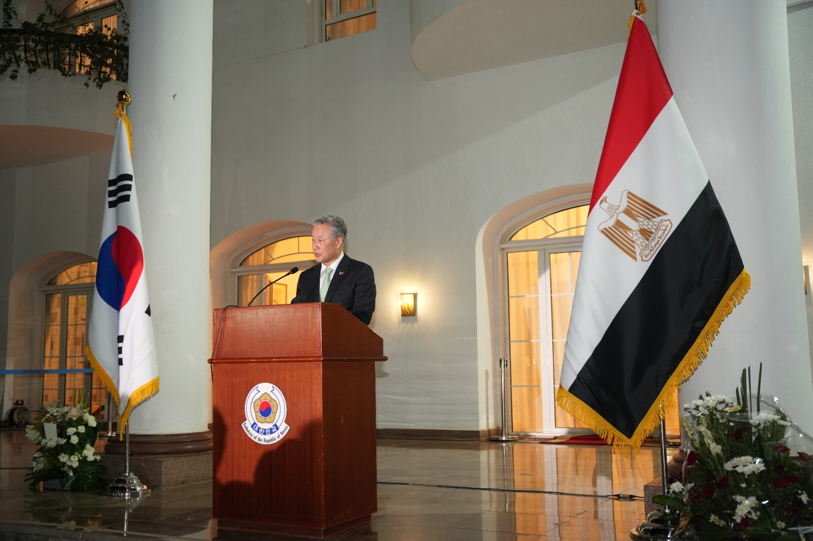 جاء ذلك خلال كلمة للسفير ضمن احتفال سفارة كوريا الجنوبية بالقاهرة، أمس الثلاثاء بالعيد الوطني، في حضور عدد كبير من السفراء وأعضاء البعثات الدبلوماسية.