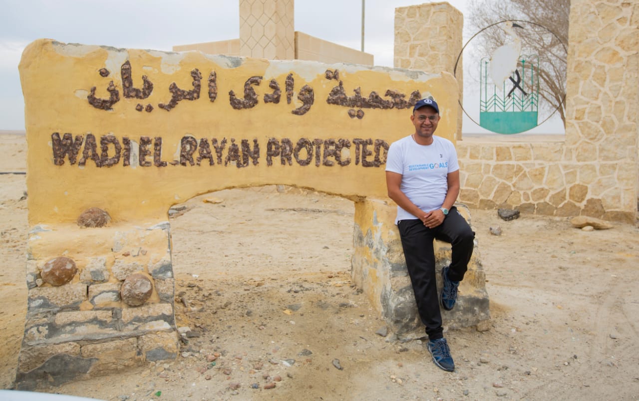 المغامر المصرى علي عبده يزور محميتي وادى الريان ووادى الحيتان خلال رحلته إلى دبي بالدراجة الكهربائية