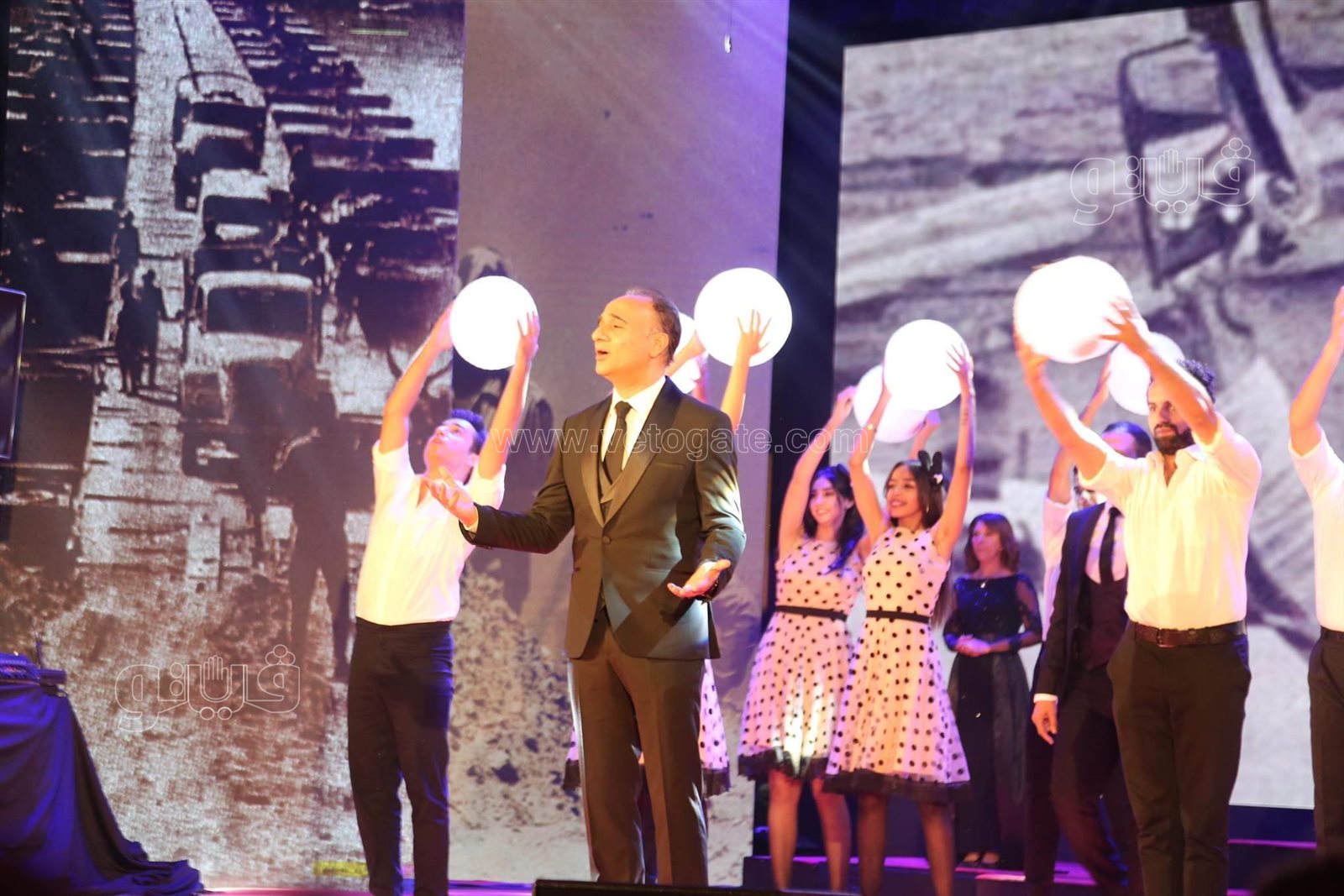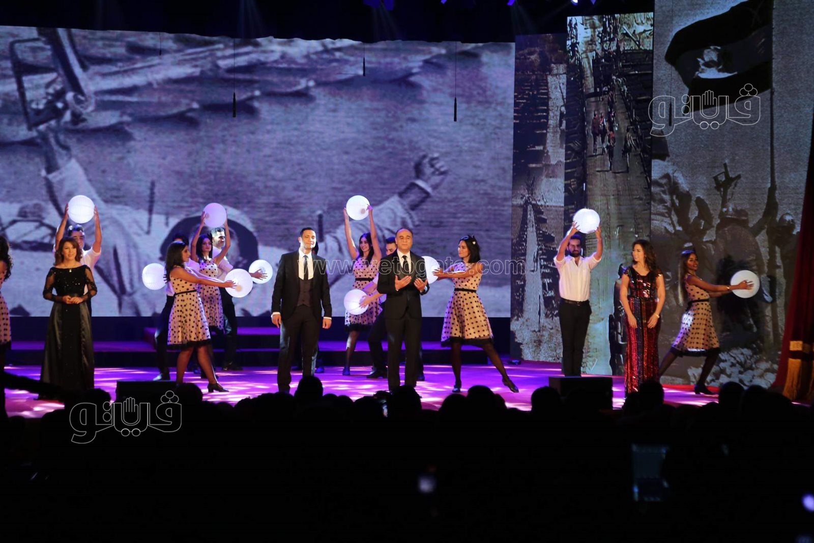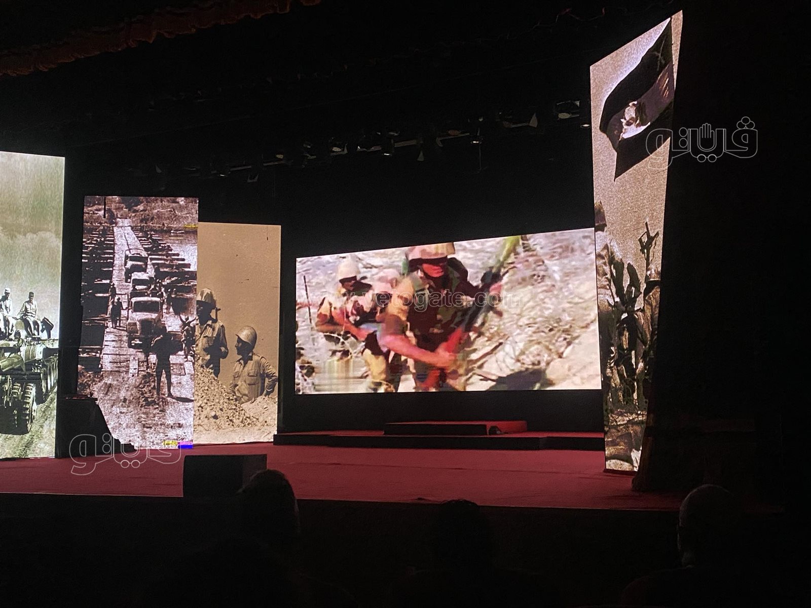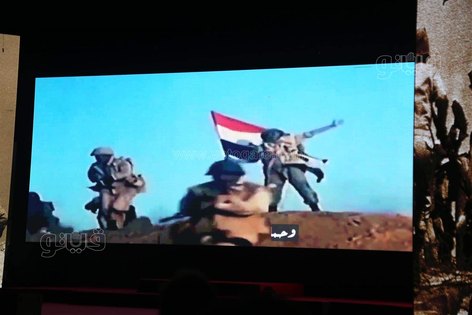 وبدأت الاحتفالية بعرض فيلم تسجيلي عن الحرب المجيدة، وذلك على أنغام أغنية "شايلين في ايدنا سلاح".