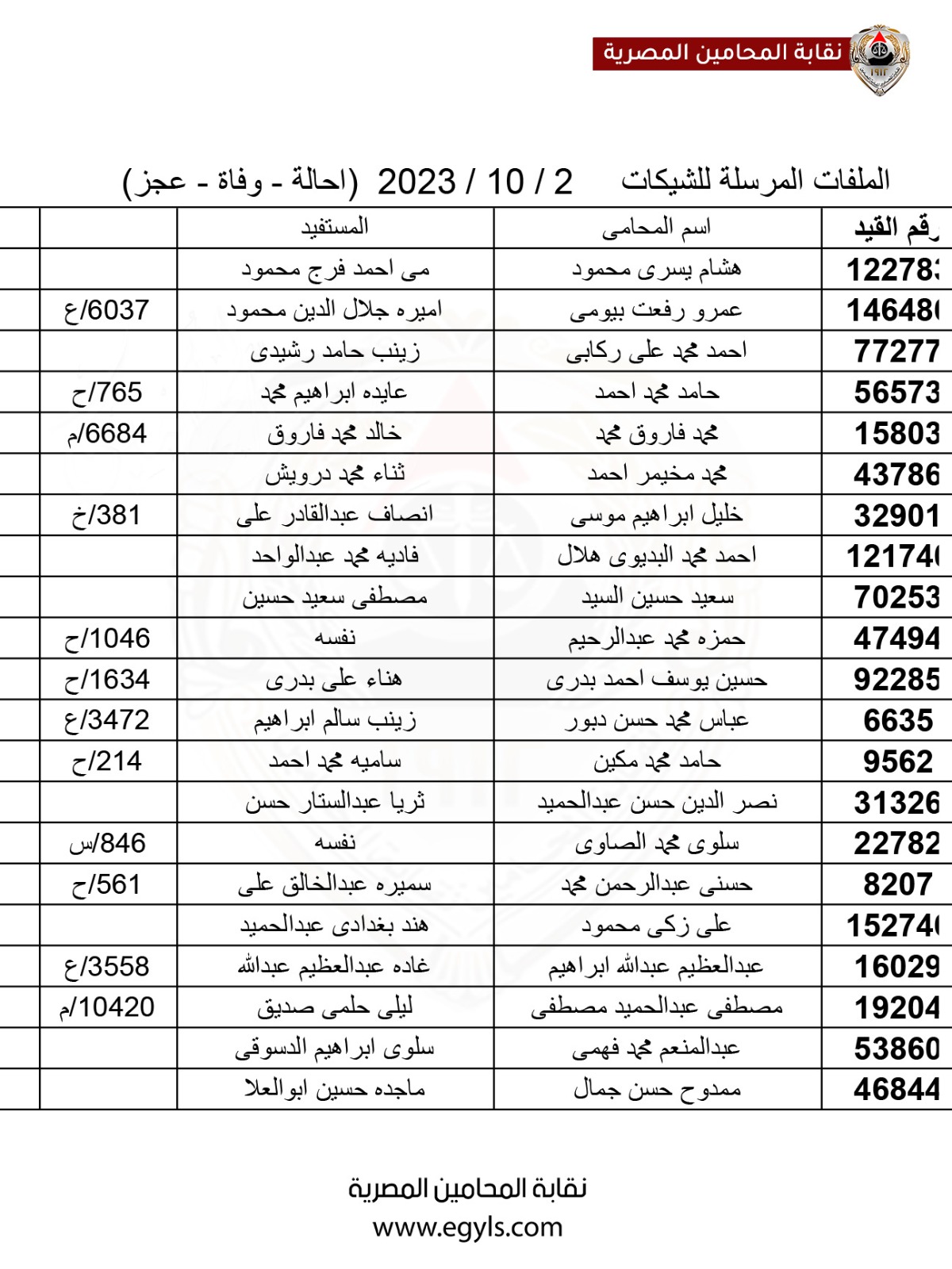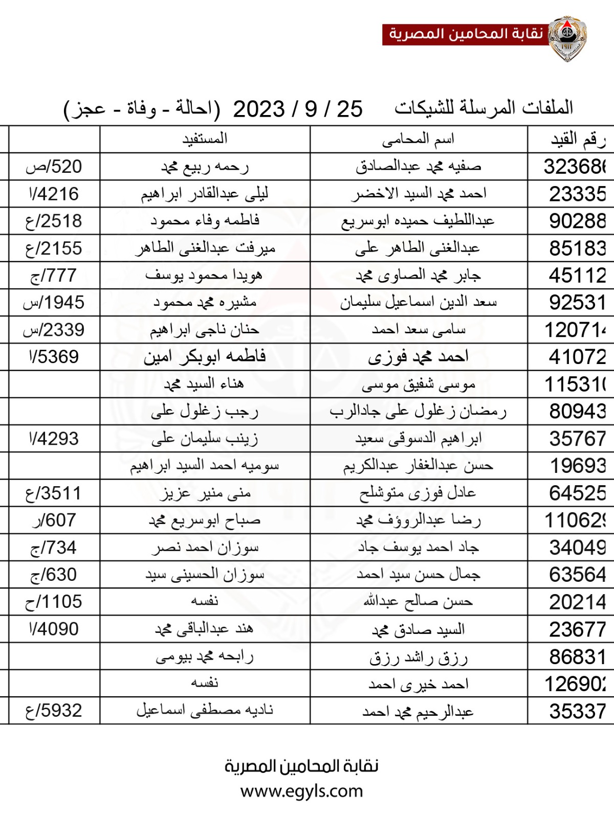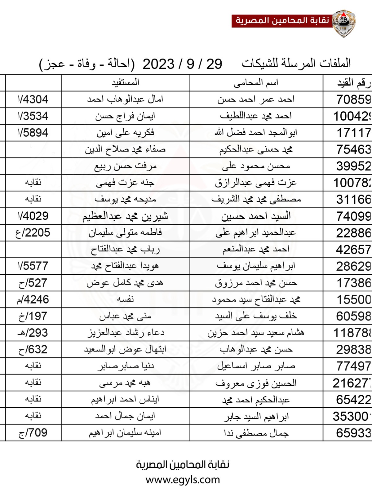 لجنة معاشات المحامين تنتهي من فحص ومراجعة 205 ملفات تمهيدا لصرفها