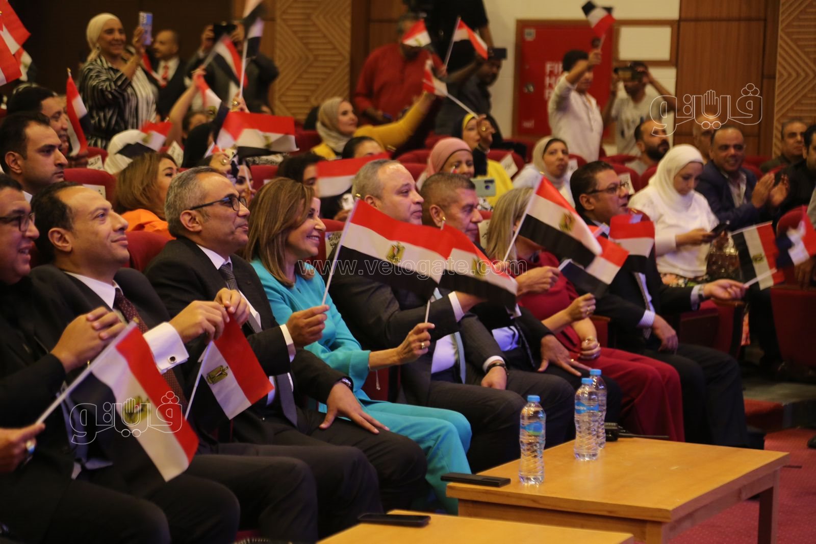 وكانت احتفالية "مصر 5000 سنة حضارة.. 50 سنة عبور" قد بدأت بعرض فيلم تسجيلي عن الحرب المجيدة، وذلك على أنغام أغنية "رايحين شايلين في ايدنا سلاح".
