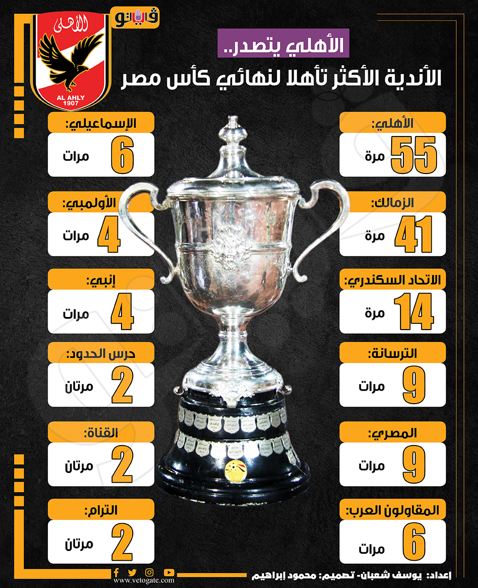 الأهلي يتصدر.. الأندية الأكثر تأهلا لنهائي كأس مصر (إنفوجراف)