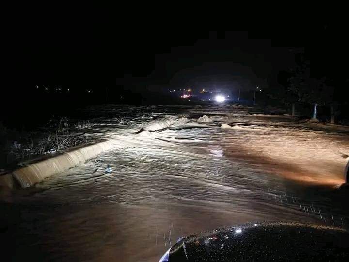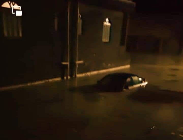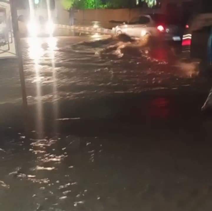 وتسببت مياه الأمطار الغزيرة والسيول في غرق جزئي بمنطقة الكيلو 4 نتيجة تسرب مياه الأمطار والوديان.