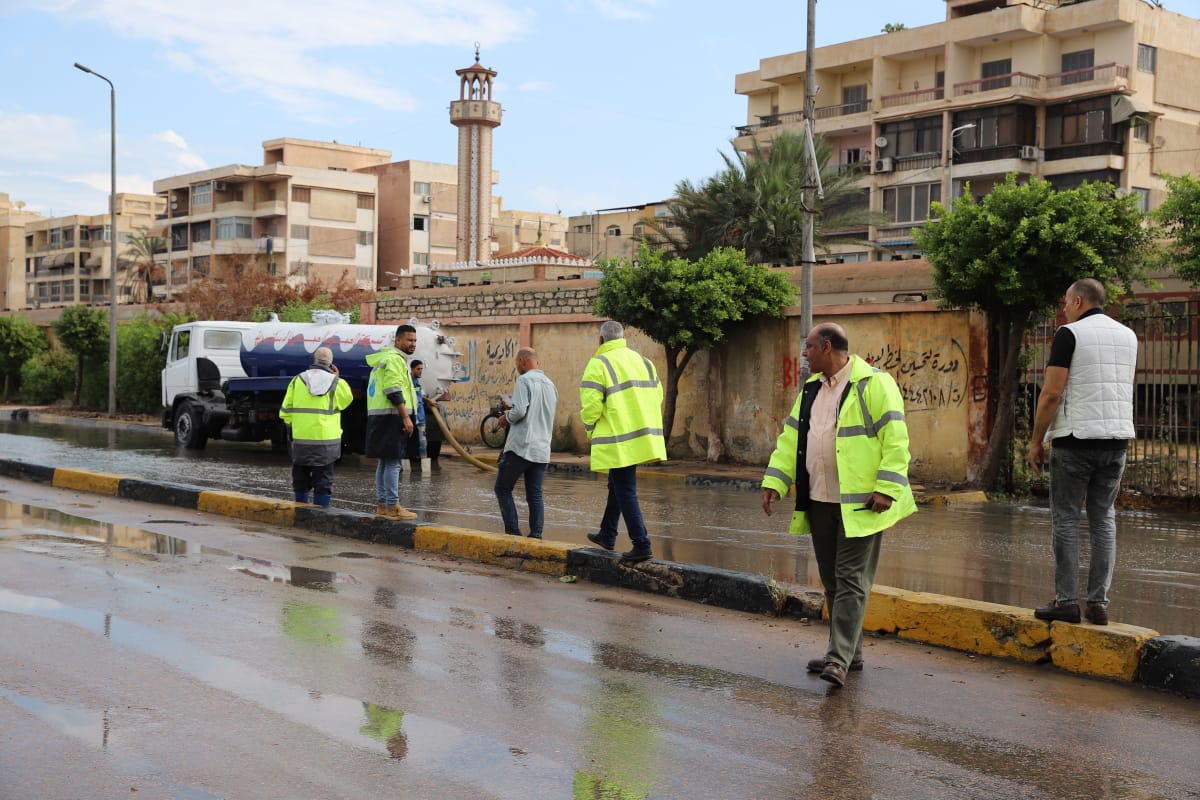 و قام اللواء محمود نافع بجولة تفقدية لأعمال سحب تجمعات المياه وتمركزات السيارات والمعدات بكوبري المندرة ومزلقان المعمورة وشارع طوسون والمعمورة السياحي وشارع بورسعيد بمنطقة المنتزة.
