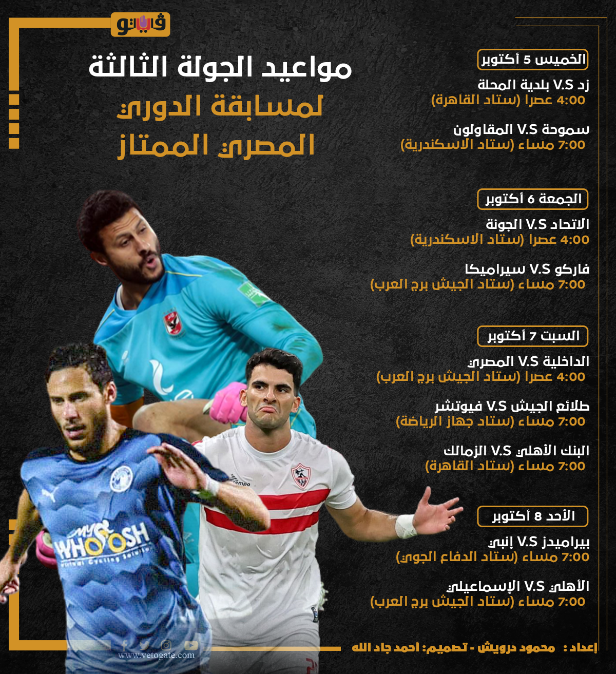 مواعيد الجولة الثالثة لبطولة الدوري المصري