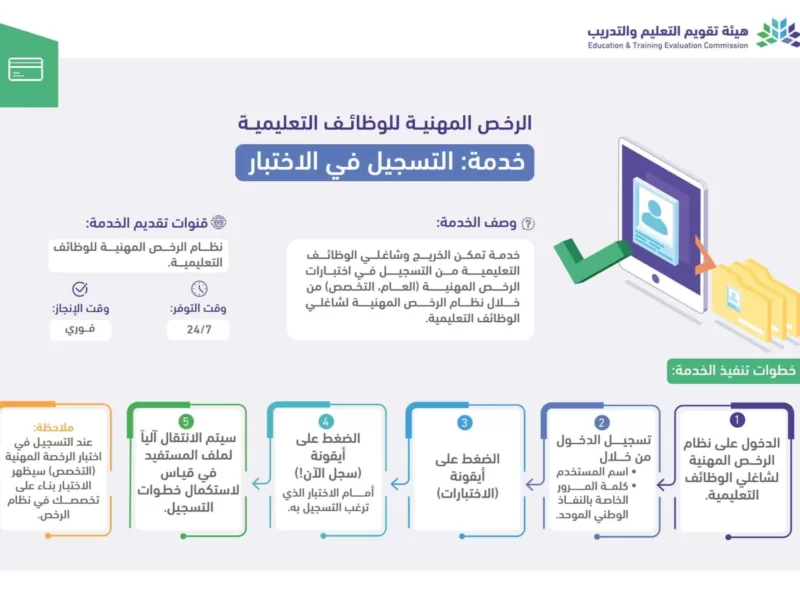وأكدت وزارة التعليم السعودية أن اختبار الرخصة المهنية للمعلمين يعتمد على ما حصل عليه المعلم من خبرات علمية وتجاربه ولخبراته المهنية على مر السنوات، ومدى اطلاعه في مجال تخصصه، وللتعرف على طريقة التسجيل في اختبار الرخصة المهنية للمعلمين من خلال تلك الخطوات: