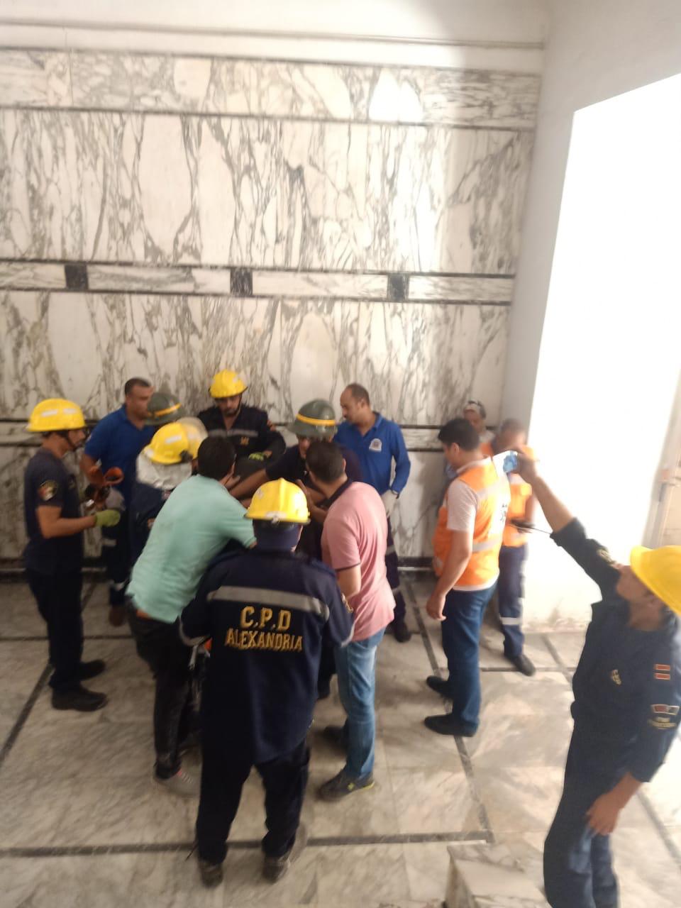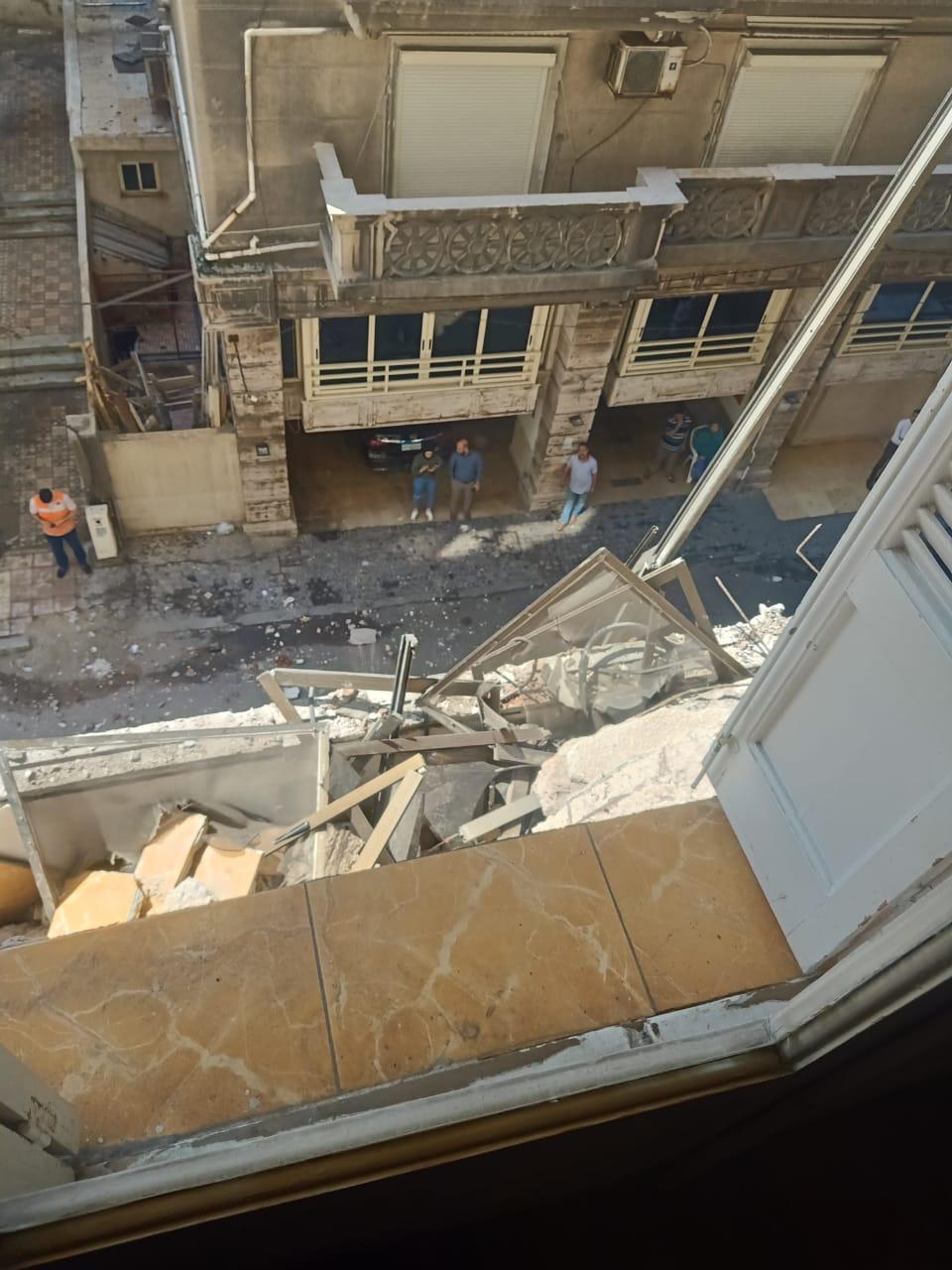 مصرع عامل وإصابة 3 آخرين في انهيار سقف شرفة بالإسكندرية (صور)