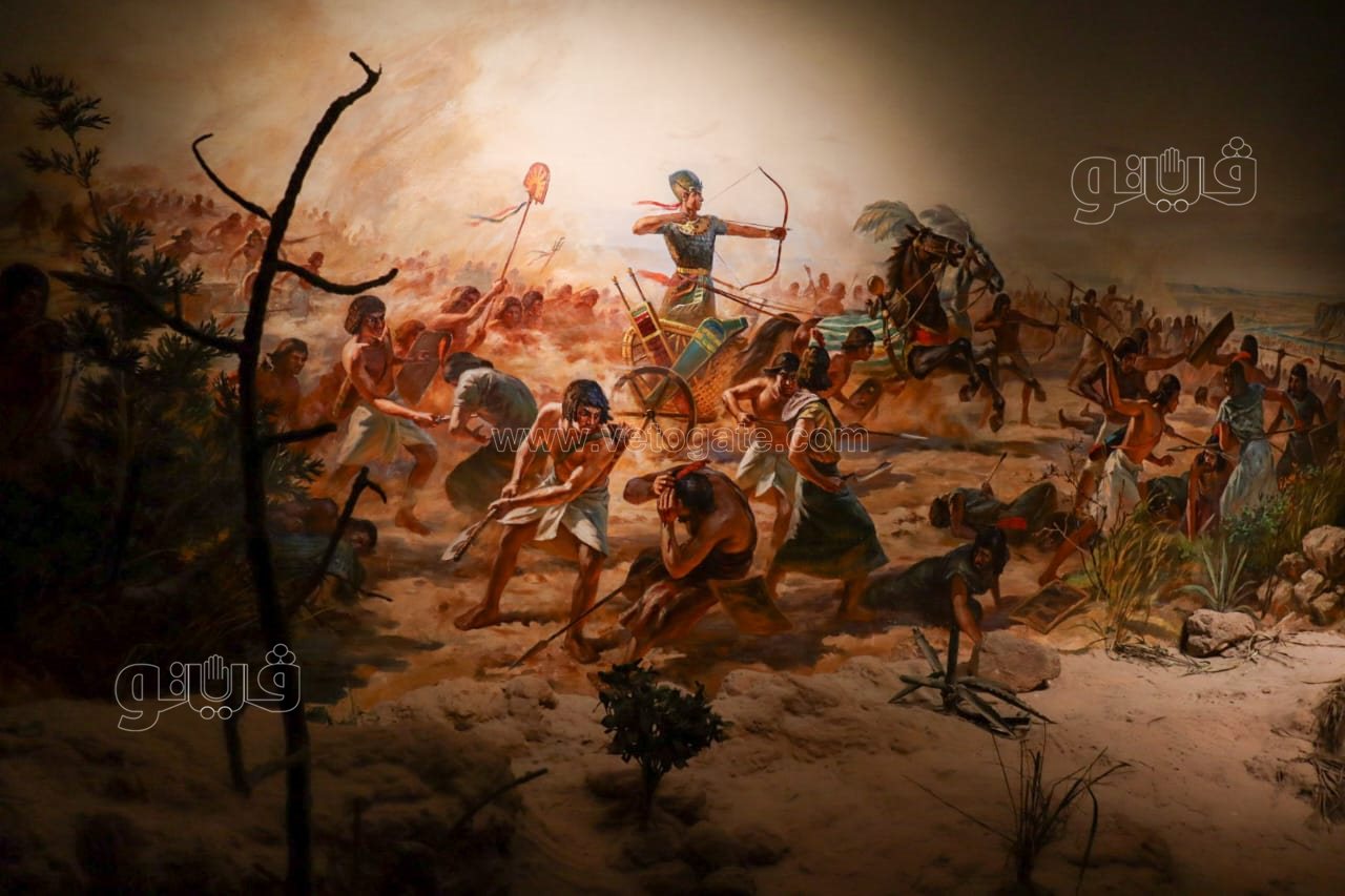 العصر الفرعوني يضم مجموعة من تماثيل للملوك المحاربين مثل تحتمس الثالث والعديد من اللوحات الحجرية أهمها لوحة تمثل الملك رمسيس الثالث وهو ينقض على الأعداء، بالإضافة إلى نموذج لعجلة حربية ولوحة حجرية يظهر عليها منظر تصويري لصناعة العجلات الحربية، وكذلك جدارية تمثل انتصار الملك رمسيس الثاني على الحيثيين.