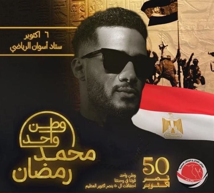 يحيي الفنان محمد رمضان في تمام التاسعة من مساء اليوم الجمعة، حفلا غنائيا في ستاد أسوان، وذلك ضمن احتفالات مرور 50 عاما على ذكرى انتصارات أكتوبر المجيدة.