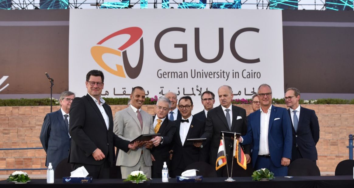 وقع كل من الدكتور أشرف منصور رئيس مجلس أمناء الجامعة الالمانية بالقاهرة GUC والرئيس المشارك لمجلس أمناء الجامعة الالمانية الدولية بالعاصمة الإدارية الجديدة GIU - جوليان أوزوالد عمدة فرويدنشتات - ستيفان بوجنيدر رئيس جامعة شوارزوالد (جامعة البلاك فورست في المانيا) Schwarzwald إتفاقية للتعاون الوثيق والمثمر مع الجامعات الثلاث GUC، GIU وGIU Berlin في مجالات الهندسة الميكانيكية، الميكاترونكس، الروبوتات، هندسة الإنتاج، الذكاء الاصطناعي والاستدامة بهدف تعزيز التميز في التدريس والبحث وتطوير حلول مبتكرة لتحديات العالم الحديث.