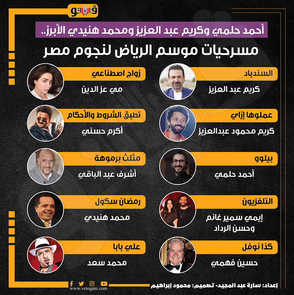 أحمد حلمي وكريم عبد العزيز ومحمد هنيدي الأبرز.. مسرحيات موسم الرياض لنجوم مصر (انفوجراف) السبت 07/أكتوبر/2023 - 01:14 م 10/7/2023 1:14:08 PM مسرحيات موسم الرياض، فيتو سارة عبد المجيد شارك طباعة 18 حجم الخط شارك طباعة أشرف عبدالباقي أحمد السعدني أكرم حسني ايمى سمير غانم بيومي فؤاد حسين فهمي كريم محمود عبدالعزيز كريم عبدالعزيز حمدي الميرغني حسن الرداد