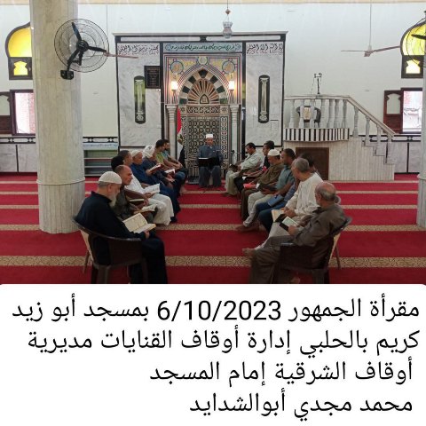 ومن جانبه أشار الشيخ مجدي بدران وكيل وزارة الأوقاف إلى قيام المديرية بتنفيذ فعاليات القافلة الدعوية الكبرى بمساجد مدينة القنايات والتي أقيمت تحت رعاية الدكتور محمد مختار جمعة وزير الأوقاف والدكتور ممدوح غراب محافظ الشرقية وبمشاركة نخبة متميزة من علماء الأزهر والأوقاف حيث ضمت القافلة بين أعضائها فضيلة الأستاذ الدكتور شعبان كفافي العميد الأسبق لكليه اللغة العربية بالزقازيق وعميد المركز الثقافي الإسلامي بفاقوس وعضو اللجنه العليا للدعوة الإسلامية بالشرقية والأستاذ الدكتور محمد شحاته أستاذ ورئيس قسم العقيدة والفلسفة بكلية أصول الدين والدعوة بالزقازيق والدكتور عبد الستار عبد البديع استاذ ورئيس قسم الحديث الشريف وعلومه بكلية الدراسات الإسلامية بفاقوس والدكتور ناصر عبد الأعلى مدير عام الدعوة بمديرية أوقاف الشرقية.