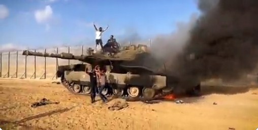 في الساعة 6.52 صباحًا بدأت وسائل الإعلام الفلسطينية تبث فيديو للحظة اقتحام المقاومين بكتائب القسام لمستوطنات غلاف غزة.