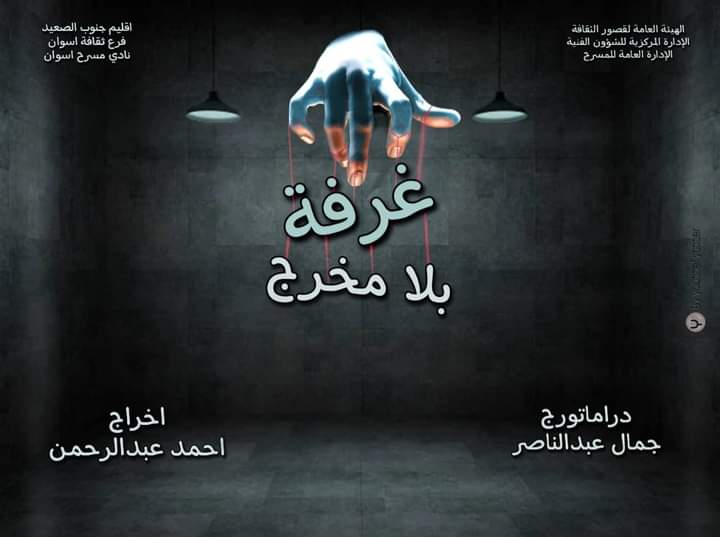 أما العرض المسرحي الثاني يحمل عنوان "غرفة بلا مَخرج" لفرقة أسوان المسرحية، وهو من تأليف محمد عويس، وإخراج أحمد عبد الرحمن، ويعرض في تمام الثامنة مساء.