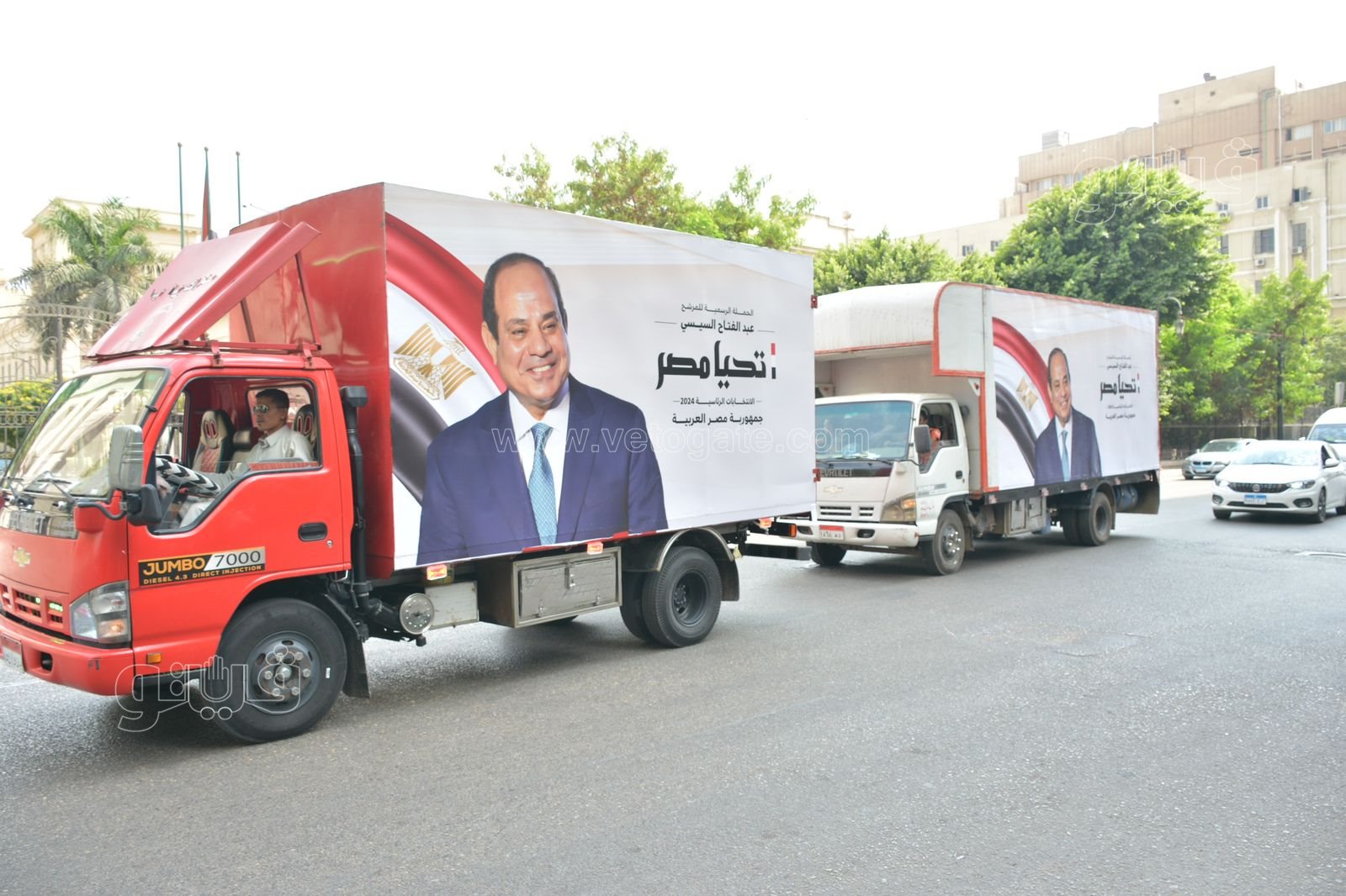 4 سيارات نقل تحمل توكيلات السيسي لهيئة الانتخابات (فيديو وصور)