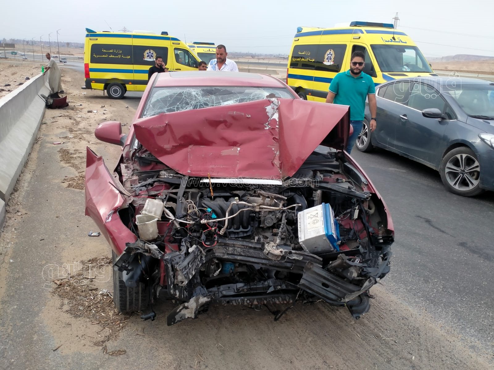 أول صور لإصابة 6 أشخاص في تصادم سيارة نقل مع ملاكي بالدائري الأوسطي