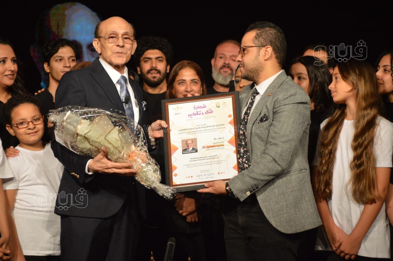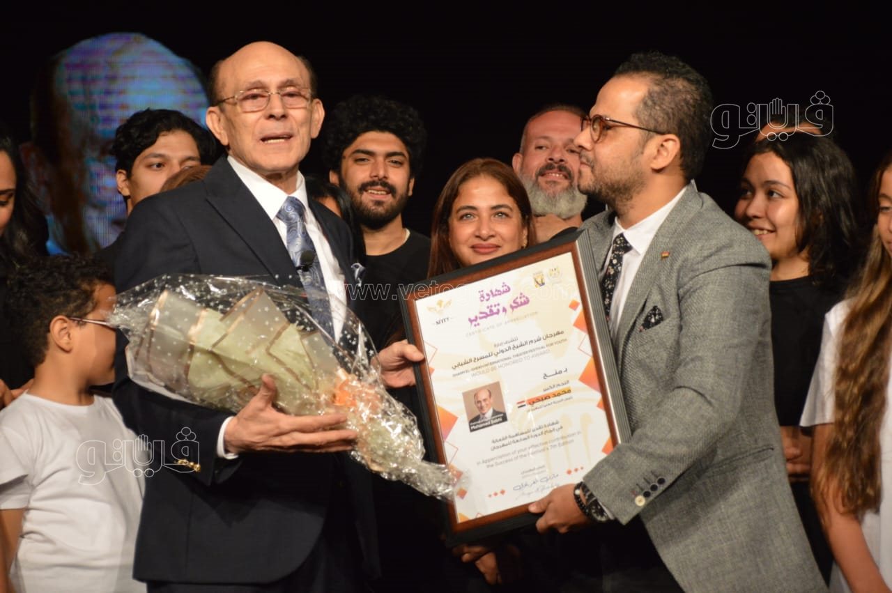 وخلال الحفل كرم المخرج مازن الغرباوي رئيس مهرجان شرم الشيخ الدولي للمسرح الشبابي الفنان محمد صبحي، ومنحه شهادة تقدير من المهرجان على جهوده في دعم المهرجان خلال الدورة الماضية.